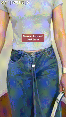 It is great for layering. You can pair it with longer tops, tunics, or jackets that can be worn over the jeans without creating bulk around the waist. This makes it a practical choice for cooler weather and for creating multi-layered outfits.